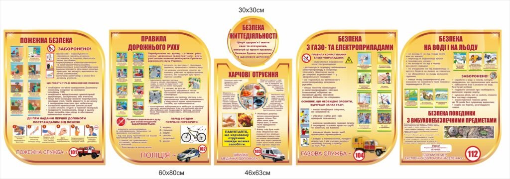 Комплект стендів “Безпека життєдіяльності, пожежна безпека, правила дорожнього руху, газова безпека, безпека на воді і льоду”