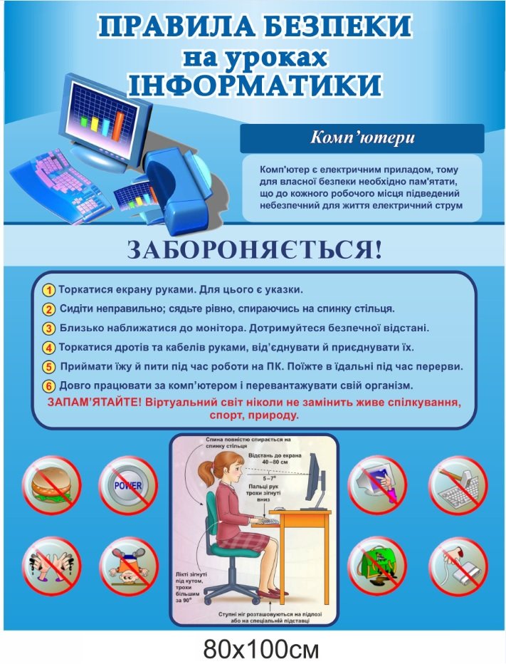 Правила безпеки на уроках інформатики – стенд