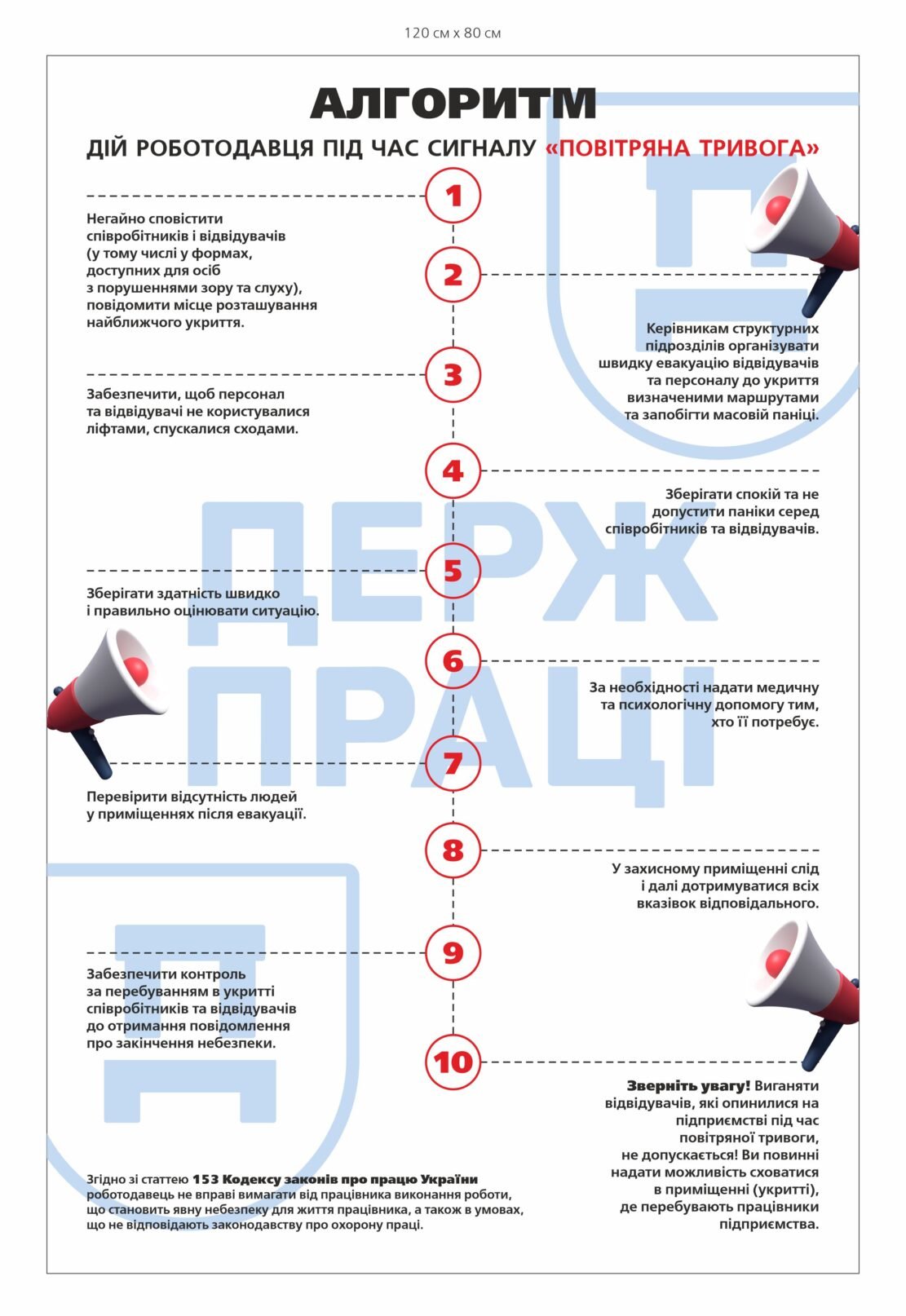 Стенд “Алгоритм дій роботодавця під час повітряної тривоги”