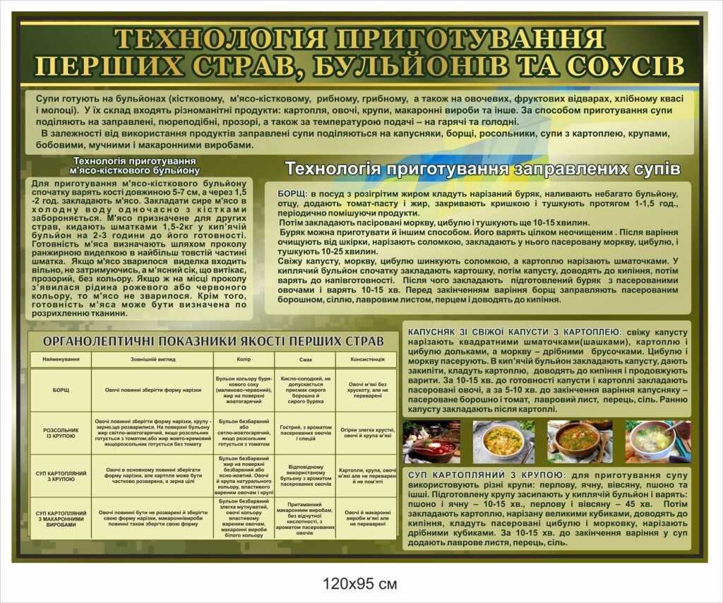 Стенд для військових “Технологія приготування перших страв, бульйонів, та соусів”