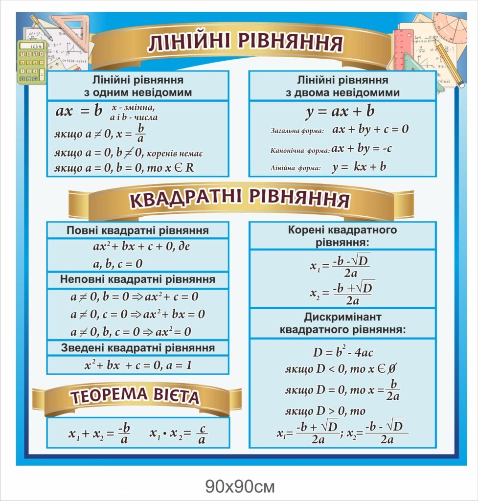 Стенд “Лінійні та квадратні рівняння”