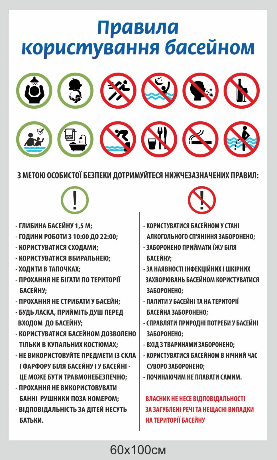 Табличка “Правила користування басейном”